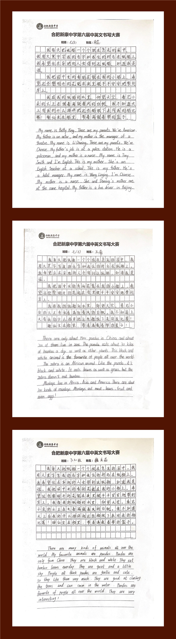美观的书写是一个人靓丽的名片。于学生而言,书写之美,主要体现在规范、整洁、美观三大方面。为了提升同学们的书写能力和水平,帮助同学们养成认真的书写态度和习惯,合肥新康中学利用12月2日的晚自习,举行了第六届中英文书写大赛。