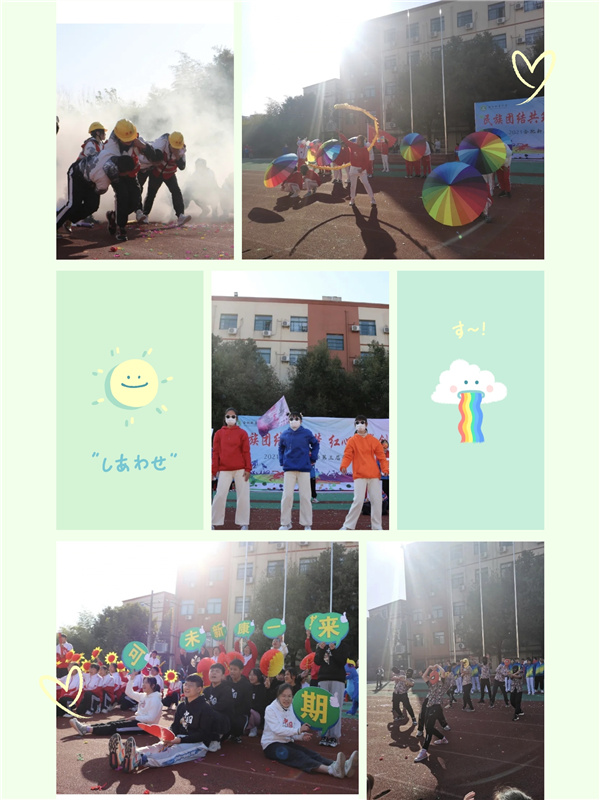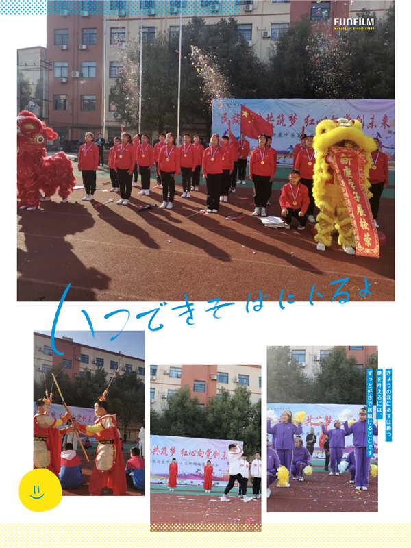精彩纷呈的入场仪式结束后,国旗护卫队英姿飒爽、豪迈前行。全体起立,升国旗唱国歌,鲜艳的五星红旗迎风飘扬,爱国荣校之情在师生们心田激荡……运动员代表、裁判员代表分别上台宣誓,表示会严格遵守比赛规则和裁判员纪律,友谊第一,比赛第二,文明比赛,共享盛会。一时间,呐喊声、欢呼声此起彼伏一时间,呐喊声、欢呼声此起彼伏,整个校园成为欢腾的海洋!随后,趣味运动会在吉祥物的赛跑中拉开帷幕。整个校园成为欢腾的海洋!随后,趣味运动会在吉祥物的赛跑中拉开帷幕。