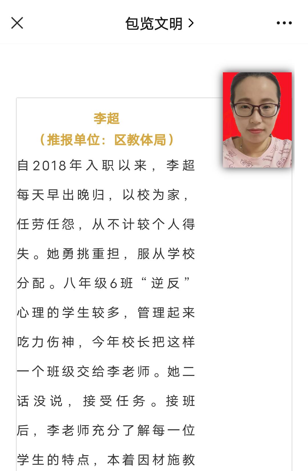 四、春风化雨育桃李,润物无声洒春晖——热烈祝贺我校李超老师荣获“包河好人”光荣称号
