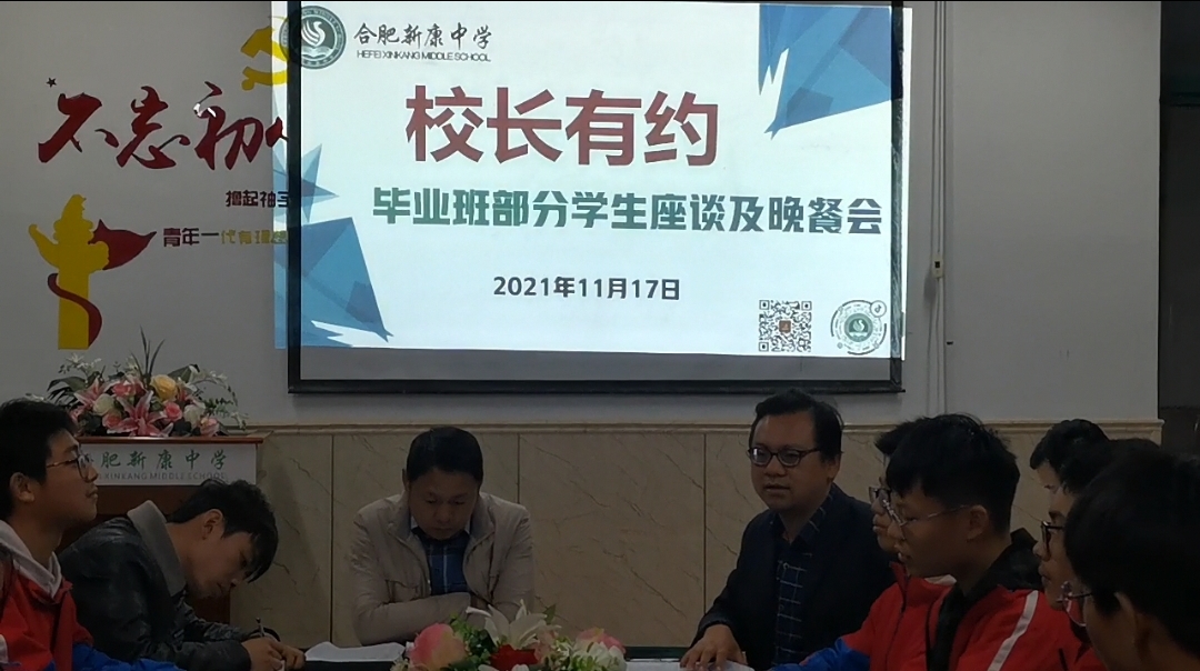 2021年11月18日下午17点50分,我校召开题为“校长有约--毕业班部分学生座谈及晚餐会”。