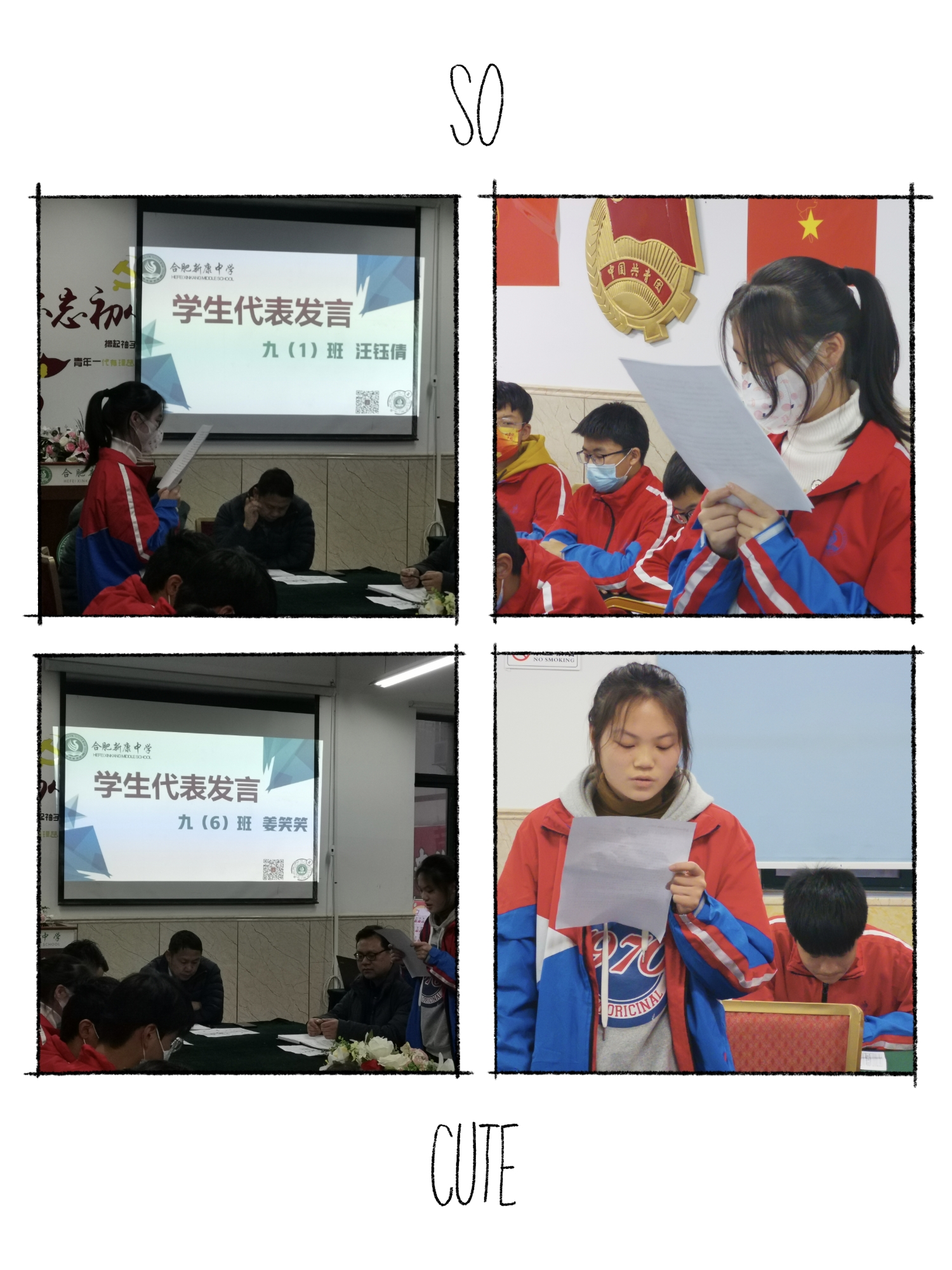 紧接着,九(6)班姜笑笑同学则从时间利用和自主学习的角度向大家分享了她在初三学习中的心得体会。“努力到无能为力,拼搏到感动自己!”时光不负赶路人,加油吧,少年!成功属于每一个不懈攀登的新康人!