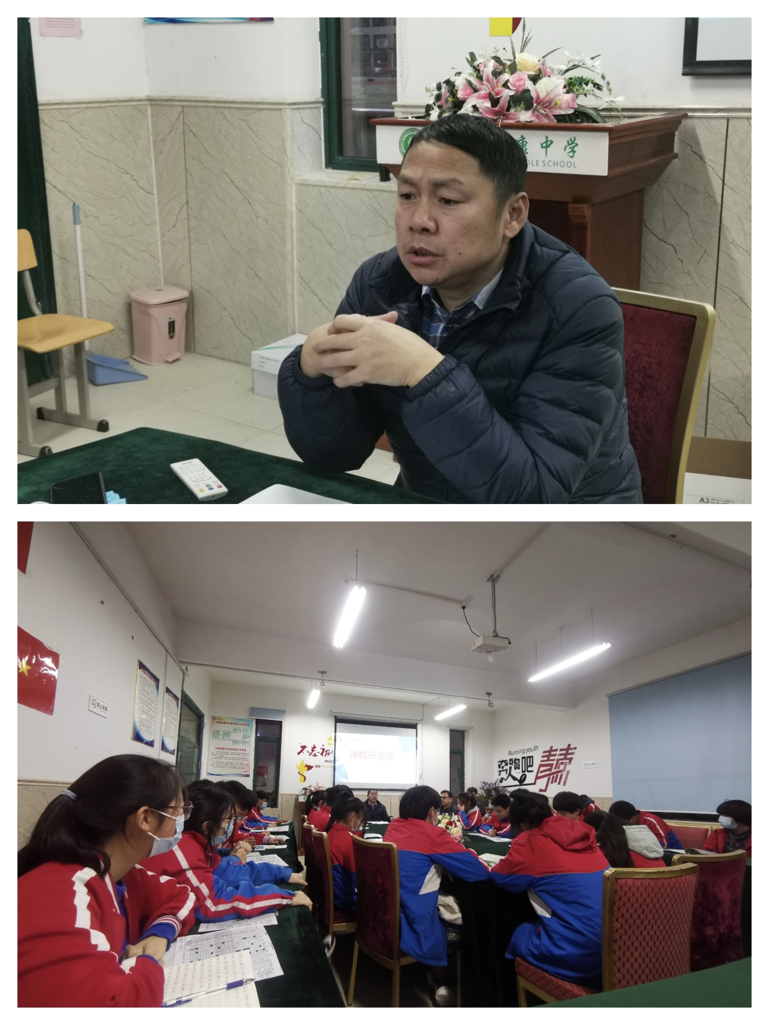 活动过程中,龚校长以科学严谨的方法,真挚的语言向在座的优秀学生代表分析成绩得失,探讨学习方法,希望孩子们在接下来的百日冲刺中能够静下心来,关注当下;追求热爱,坚定不移;关注细节,超越自我!