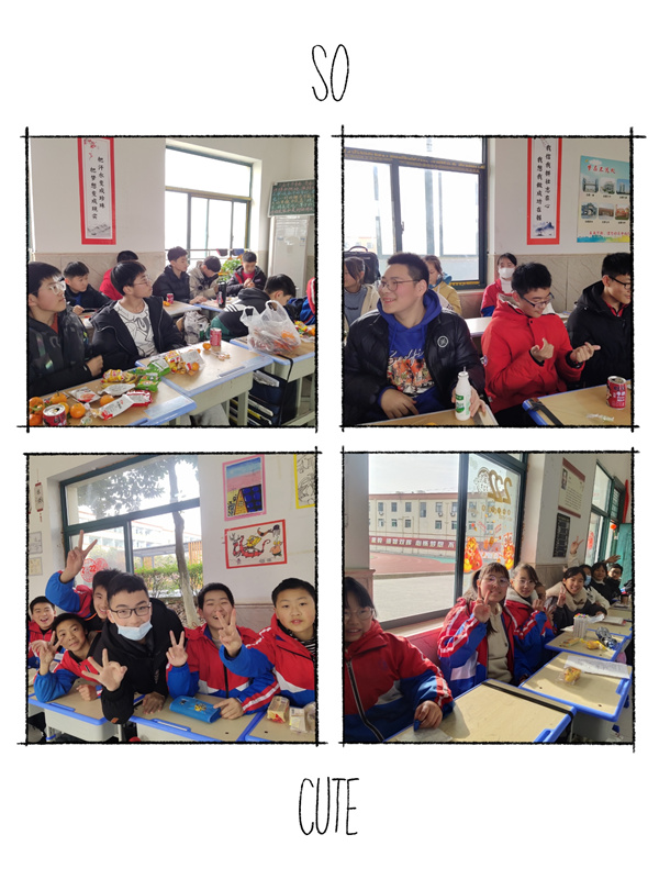 联欢会形式多样有歌曲演唱、舞蹈表演、诗歌朗诵、小品相声、趣味游戏等,将联欢会推向一个又一个高潮。各类的小零食也是同学们的最爱,嘴里的甜蜜与节目的精彩相融合,这甜蜜的乐趣让班级内不时爆发了出掌声和欢呼声,开心与快乐的心情在班级彻底绽放。