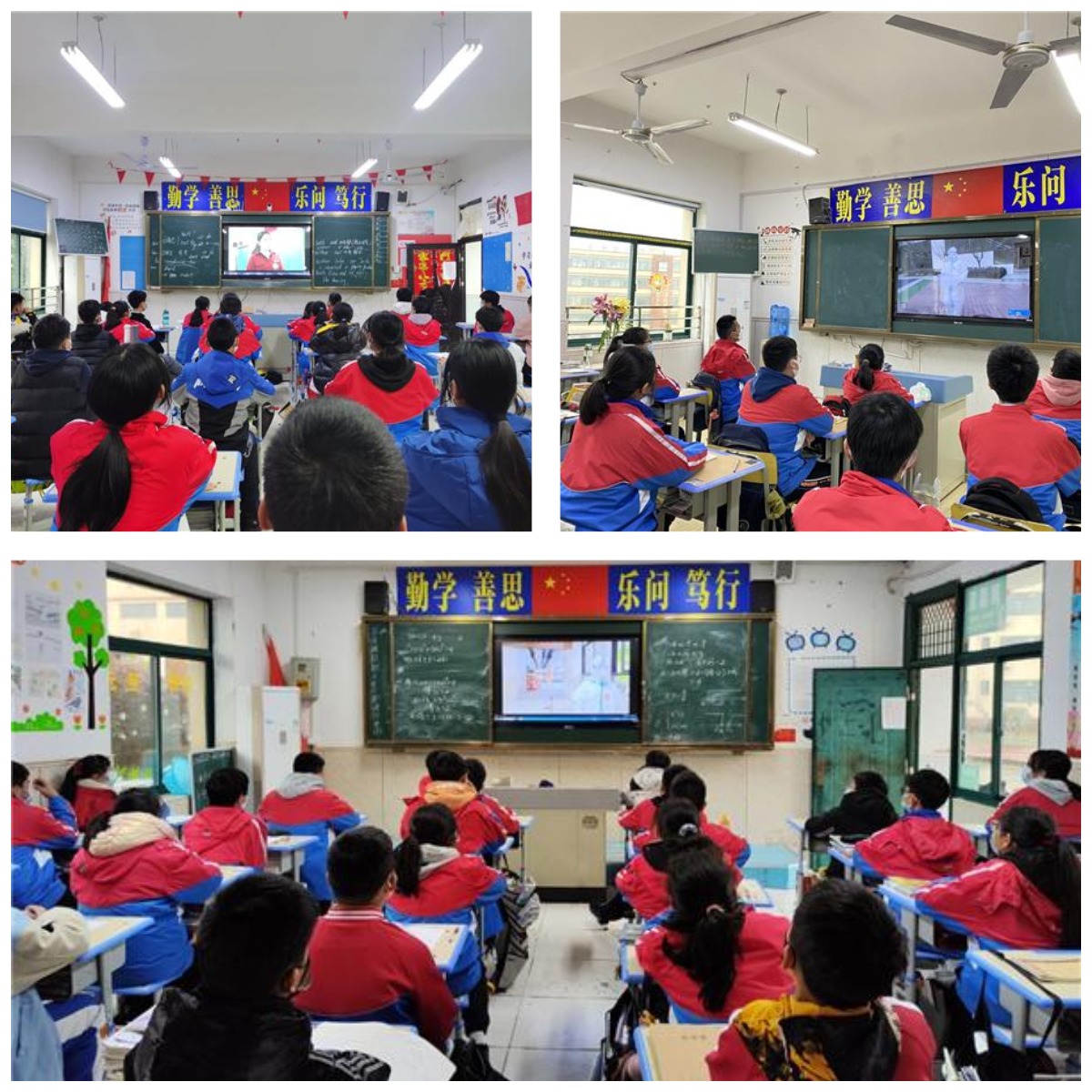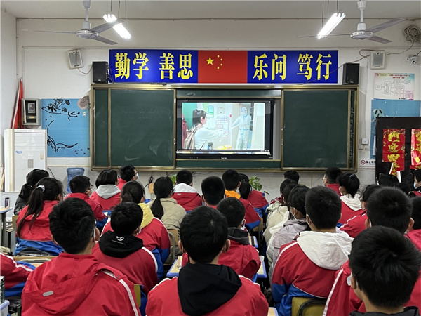 校园广播结束后,由初中部各班级班主任开展各具班级特色的“突发新冠肺炎疫情应急处置”的主题班会课,将广播播报的疫情应急处置方案与班级实际结合进一步讲解,严格落实消毒、通风、晨午(晚)检、核酸检测等各项防控措施,深化同学们的常态化疫情防控意识与面对突发新冠疫情的应急处置能力。最后,播放一段校园突发疫情的应急处置视频,生动形象的向同学们展示如何应对突发疫情,为今后的疫情防控管理树立良好的模范。