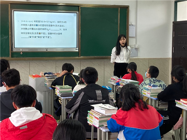 同日下午第四节课,周老师进行公开课,其主题是《浮力专练》。周老师在公开课前花了大量的时间,对每道题目的置都进行了精心选择。力求通过八道题目将浮力的知识讲透,帮助孩子们对浮力知识的理解进行一次质的飞跃。周老师的课上热情饱满,语言铿锵有力,课堂气氛热烈,孩子们就像参加一场竞赛一样,个个摩拳擦掌,积极思考,踊跃回答。