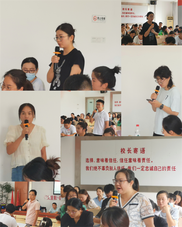 培训伊始,新入职教师分别做了自我介绍,老教师们用热情的掌声欢迎他们的到来。新加入的优秀教师将进一步增强了学校的师资力量,为学校的跨越式发展提供新动力。