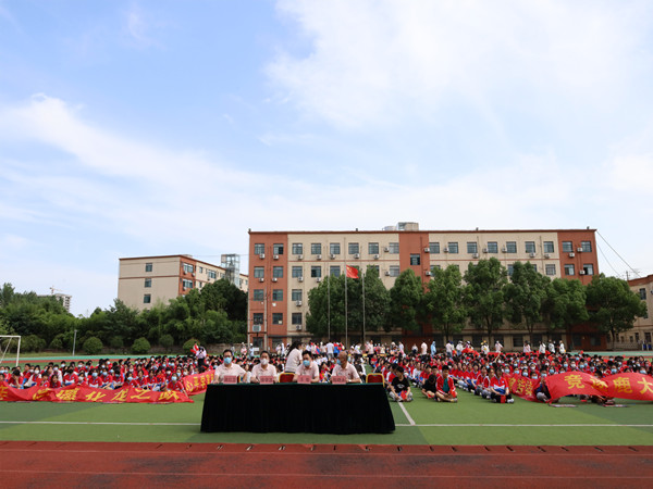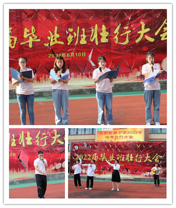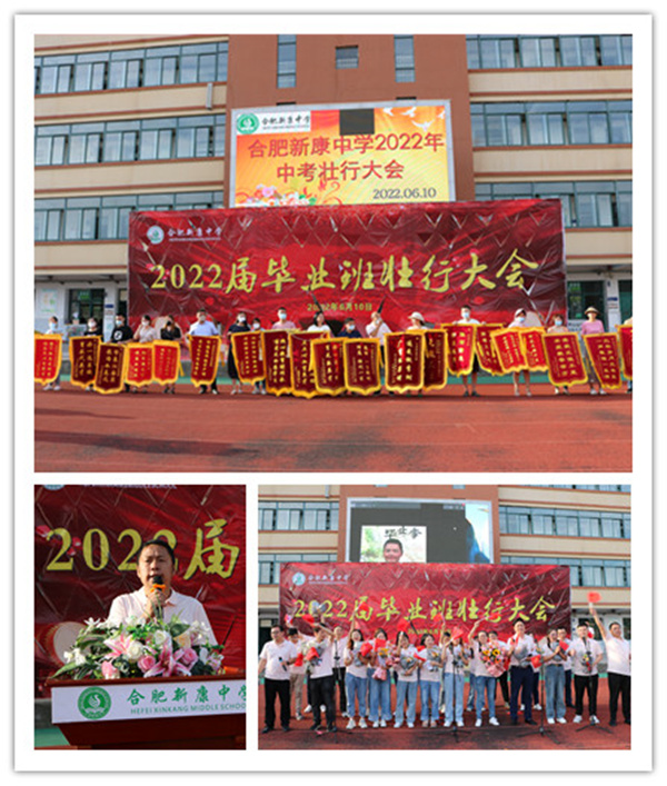 三年砺剑闯雄关,一朝试锋凯歌还。伴随盛夏的炽热,怀着对美好未来的憧憬,2022年6月10日下午,合肥新康中学初中部全体师生隆重集会,共同举行2022年中考壮行大会,为新康一期学子壮行助威。合肥新康中学董事长王俊先生、初中部校长徐学法先生、校专职副书记陈晓永先生、初中部副校长龚红卫先生,及毕业班家长代表莅临会场。