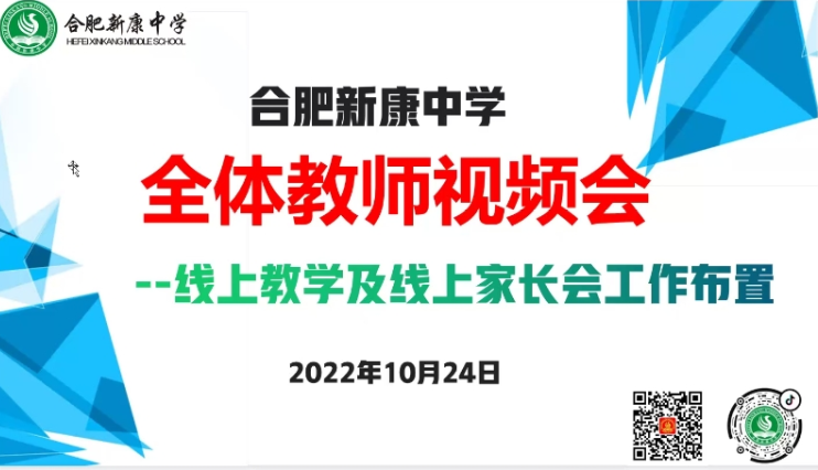 疫情不能阻碍学校的教育,距离不能阻挡家校的沟通。根据合肥市疫情防控需要,中小学暂停线下教学活动,实行线上教学。为了更好的开展线上教育教学工作,保证学生居家学习的质量。10月24日晚上,合肥新康中学初中部各班级召开了线上家长会。