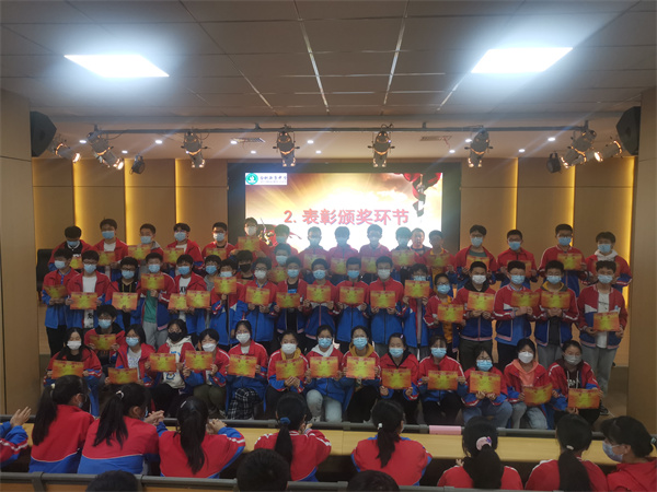 接着王琪老师宣读了在九年级第一次综合素质评价中表现优异,获得“特优生”、“优秀生”、“突出进步生”的学生名单,获表彰的同学上台领奖并合影留念。九年级学生代表曹家争同学首先回顾过往,然后展望未来。从“正确看待荣誉与失利”“提高学习效率”“保持良好心态”等方面来分享经验并劝勉同学。最后表示下定决心赴考,用最好的成绩回报学校、回报老师、回报父母、回报自己。