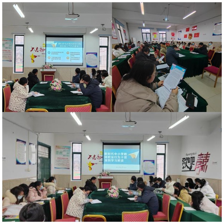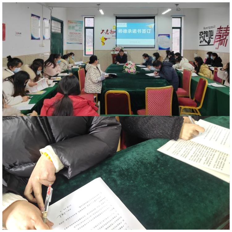 会上,初中部办公室王主任宣传了教育部公开曝光的第十一批7起违反教师职业行为十项准则典型案例,带领全体教师学习了《新时代中小学教师职业行为十项准则》。全体教师响应和遵循师德师风建设工作要求,在师德师风承诺书上庄重的签下自己的姓名。