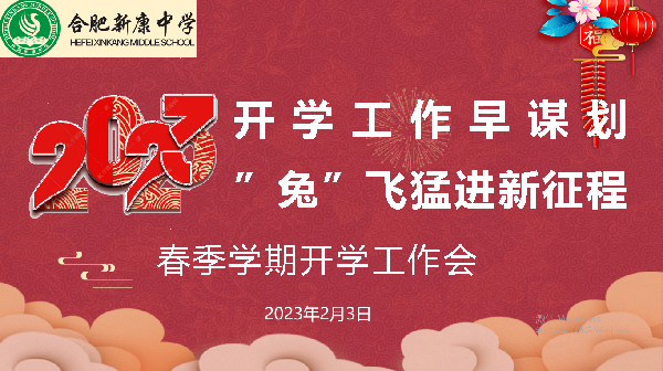 人勤春来早,功到秋华实。新的一年承载着新的梦想,孕育着新的希望。为迎接2023年春季开学,谋划新学期教育教学工作,合肥新康中学初中部于2023年2月3日下午召开春季开学工作会议。会议由王林主任主持。
