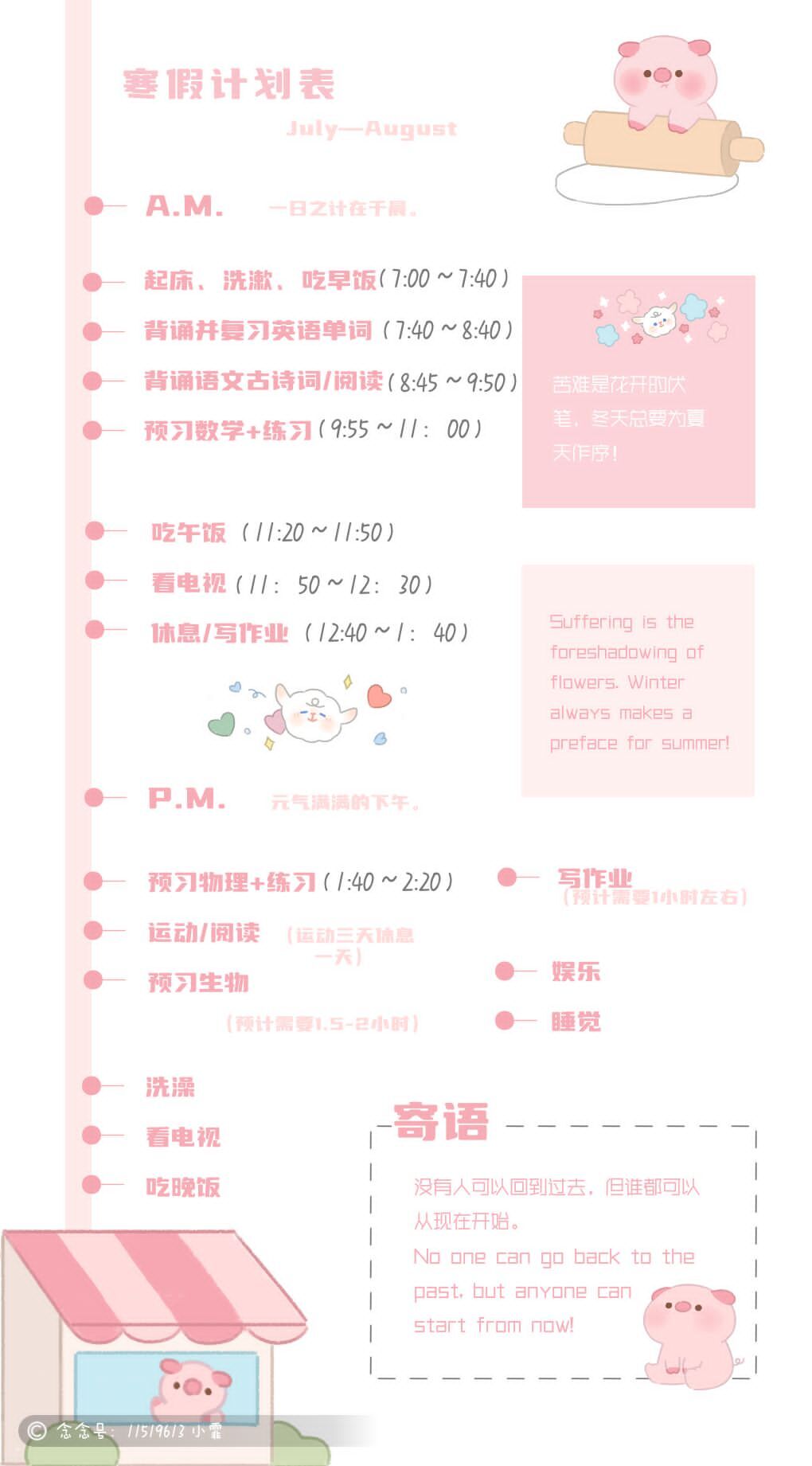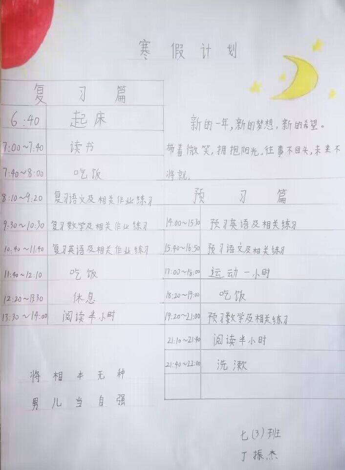 计划的生命在于执行,希望合肥新康中学初中部的孩子们在假期里努力按照计划执行,用毅力和坚持书写成长的美丽,用勤奋和自律收获更好的自己!最后,祝愿孩子们度过一个愉快、充实、安全有意义的寒假!