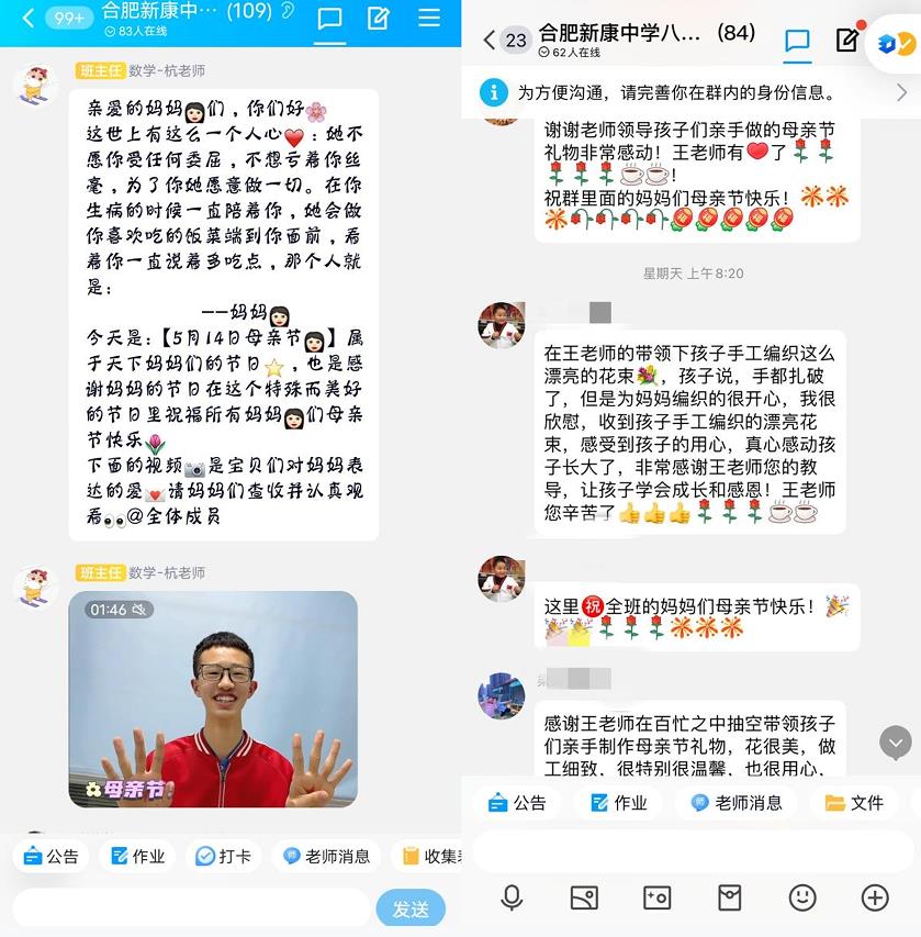 五月的母亲节,如花的灿然,五月的母亲节,以爱的绊牵。我们在爱河里温馨地荡漾,感受浓浓慈母情。在这充满爱和感恩的日子里,为了深化学生的感恩教育,培养学生的感恩意识,2023年5月14日合肥新康中学初中部德育处组织开展了 “感恩 母亲 ——让爱大声说出来 ”为主题的系列活动,通过信件寄语,摄像等方式鼓励莘莘学子寄语母亲、感恩母亲。