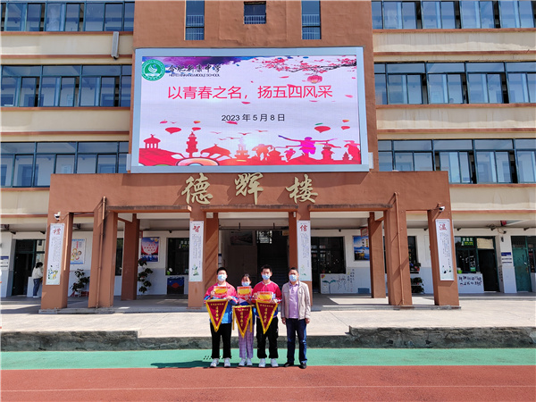 以青春之名,扬五四精神,不能止于口头,还要身体力行。为树立榜样,引导同学们要像热爱国家一样热爱集体,也为培养同学们良好的道德品质,本次活动还对四月份获得“文明班级”和“文明寝室”的班级进行了表彰,徐校长和龚校长为获奖班级颁奖并合影留念。