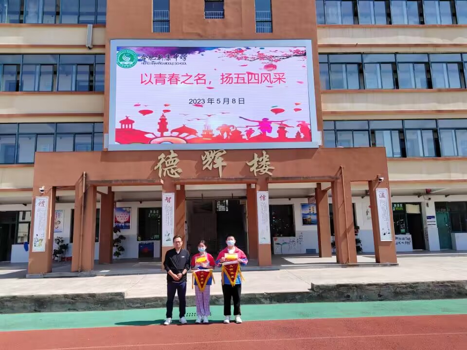五月的花海流溢飘香,五四的火炬代代相传。为弘扬五四精神,在同学们心中厚植爱国主义情怀,激励同学们树立远大理想,锤炼同学们的道德品质,合肥新康中学初中部于5月9日上午举行了“以青春之名,扬五四精神”主题升旗仪式。本次活动由八(3)的魏于杭同学主持。
