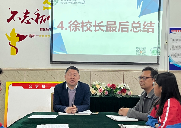 两位班主任结合学生及任教科目的学科特点,与同学们共同探讨了如何科学地进行时间管理、优化复习方法以及调整临考心态等问题,并提出了一些实用的建议和指导。激励同学们“中考未结束,你我皆是黑马”。告诉同学们,中考是智力、体力、心态、自我调试等综合能力的考验。我们要树立信心、提振精神、细化目标、精准定量、提高备考质量。希望同学们能够在中考前的最后48天“眼望高山,脚踏实地”,努力相约到顶端相见。
