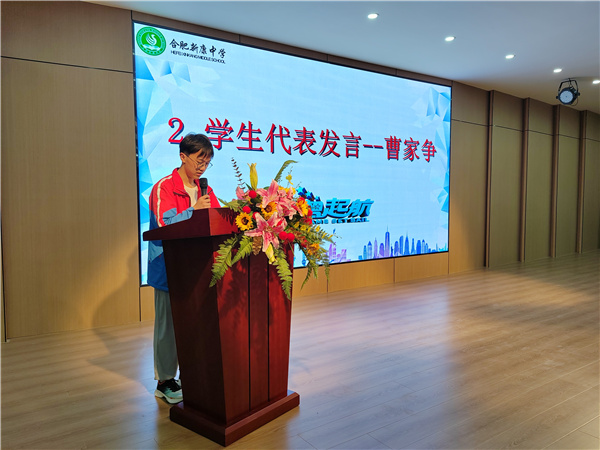 毕业班优秀学生代表曹家争同学做阶段学习总结及励志发言。鲜衣怒马少年时,不负韶华行且知,他号召毕业班的战友们以青春之姿,携梦想远航,让青春不留遗憾。