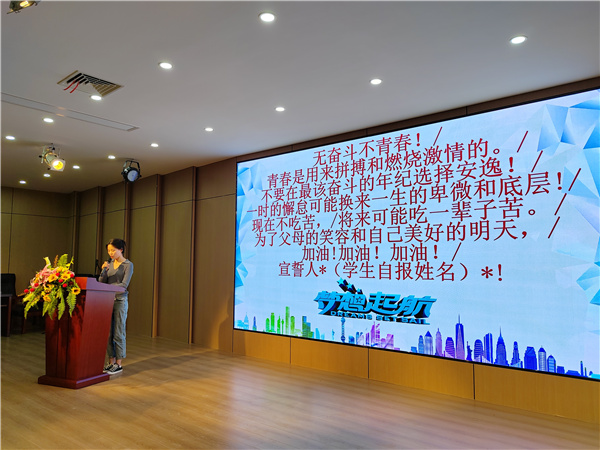 毕业班优秀学生代表王宇同学带领同学们为中考豪迈宣誓。“无奋斗不青春,青春是用来拼搏和燃烧激情的······”。在王宇同学的带领下,同学们豪情满怀,为自己加油鼓劲。