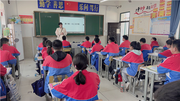 2023年4月11日上午第二节课,王若兰老师在八三班进行了一节课题为《复习一元二次方程》的数学公开课。作为初中阶段的重点之一,该节课内容十分重要。复习课知识点很多,王老师准备十分充分,与学生互动氛围热烈。教学环节层层相扣,充分体现了以生为本的课堂教学理念。由于是复习课,学生大多内容都已熟悉,王老师在设坑环节中,将课堂回归给学生,由学生自己去研究、探索。课堂严肃却学生参与感极强。数学组的各位老师们全程参与了听课与评课环节,在评课时各抒己见。