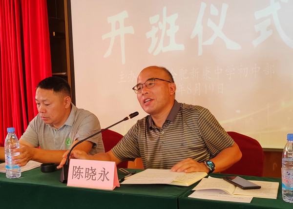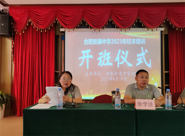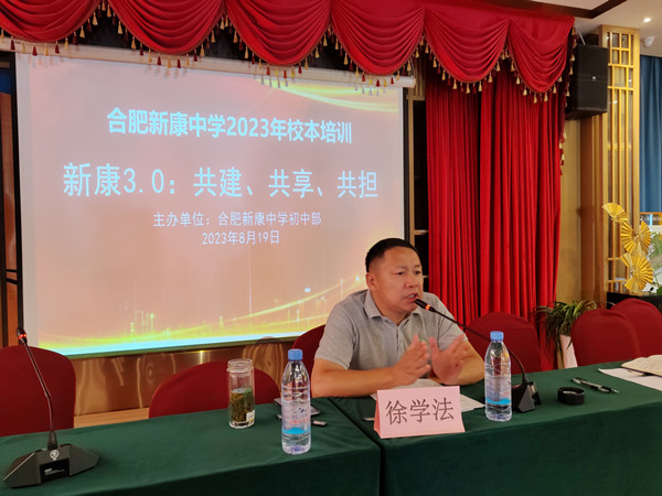19日上午,合肥新康中学初中部全体领导及教师齐聚会场。培训伊始,办公室王林主任致开场词,解读校本培训方案,徐学法校长做培训动员。
