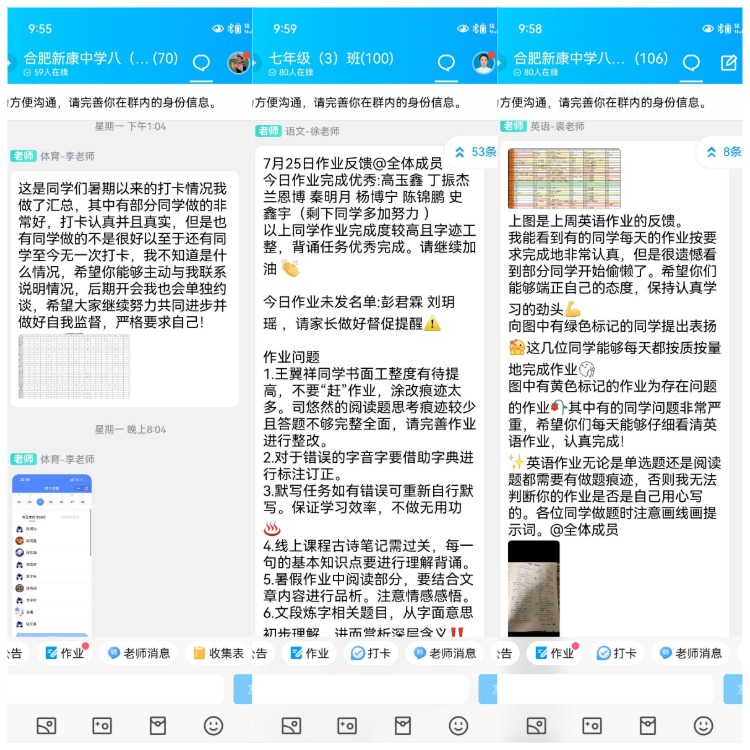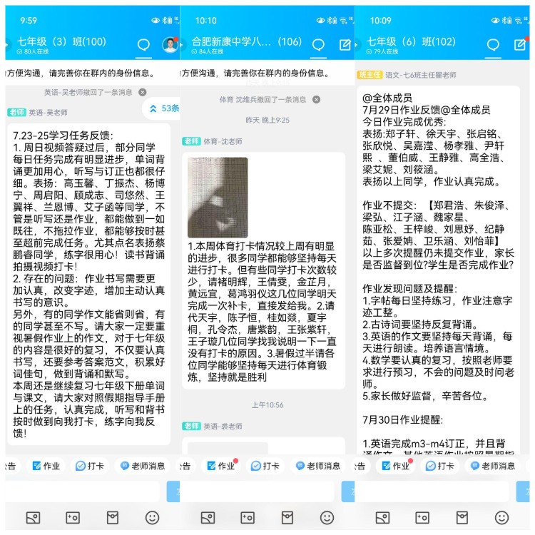 “连雨不知春去,一晴方觉夏深”。时光匆匆,暑假生活已过半,为了更好的了解和把握学生暑期学习与生活情况,促进学生自主学习意识和良好的生活习惯,新康中学初中部的老师们没有因放假而疏于对学生的关心与指导,纷纷开展了暑期学习与生活“线上”答疑与辅导,与学生们相约在云端,共建云课堂。