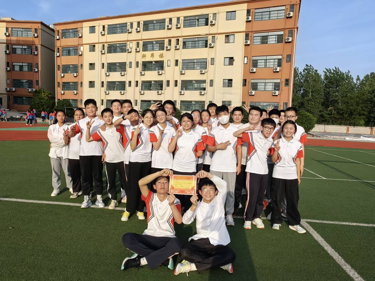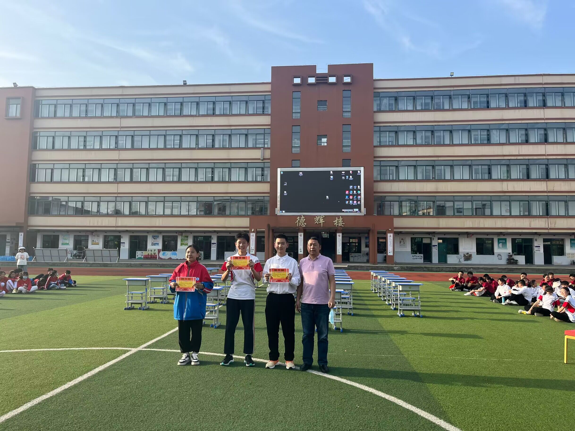 通过精彩的角逐,最终八3班荣获特等奖、七6班、八2班荣获一等奖。七4班、七2班等荣获三等奖。龚校长、徐校长分别为以上班级颁奖并合影留念。