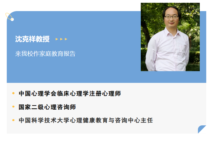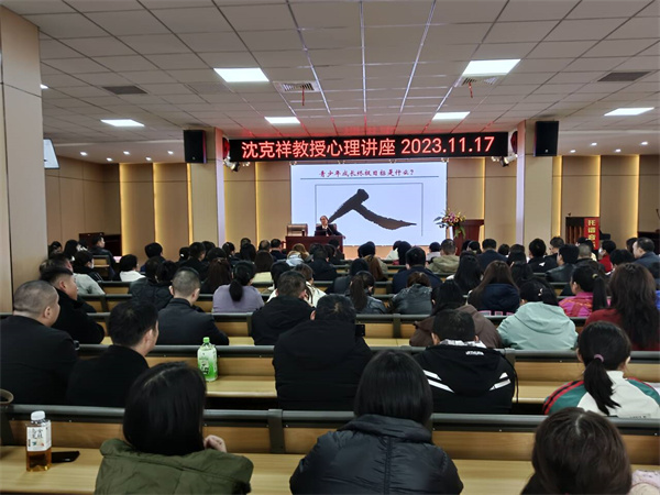 我校邀请沈克祥教授来做家庭教育报告,给家长们在家庭教育上带来了巨大的收获和有益的指导,得到了家长们的热烈好评和高度评价。学生的成长是各种环境因素综合作用的结果,我校加强家校沟通,充分发挥家校育人合力,努力保障学生的心理健康,更好地促进学生健康成长。
