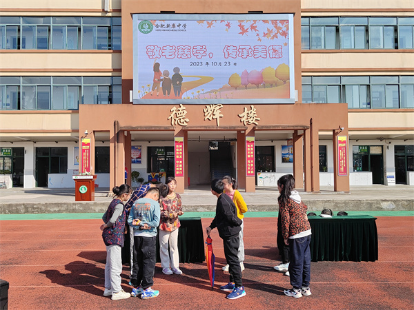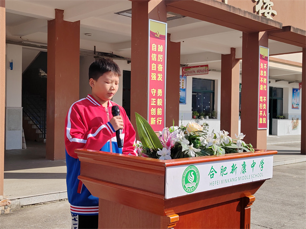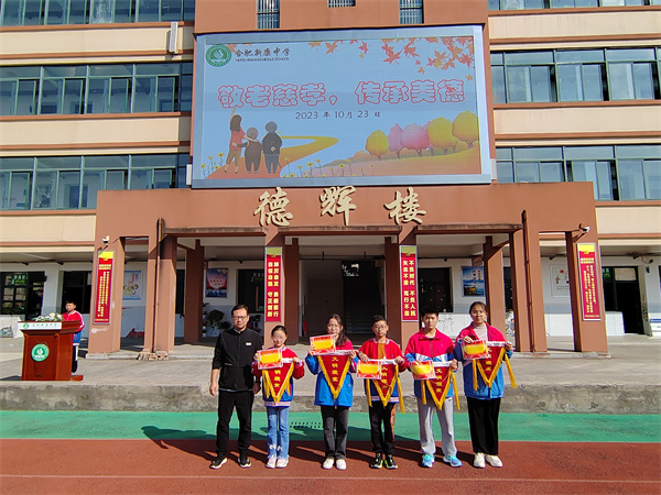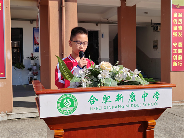 为弘扬中华民族优秀传统文化,引导同学们树立敬老孝老的道德风尚,合肥新康中学初中部于10月23日上午举行了“敬老慈孝,传承美德”——重阳节主题升旗仪式。活动由七(5)班的高天佑同学主持。
