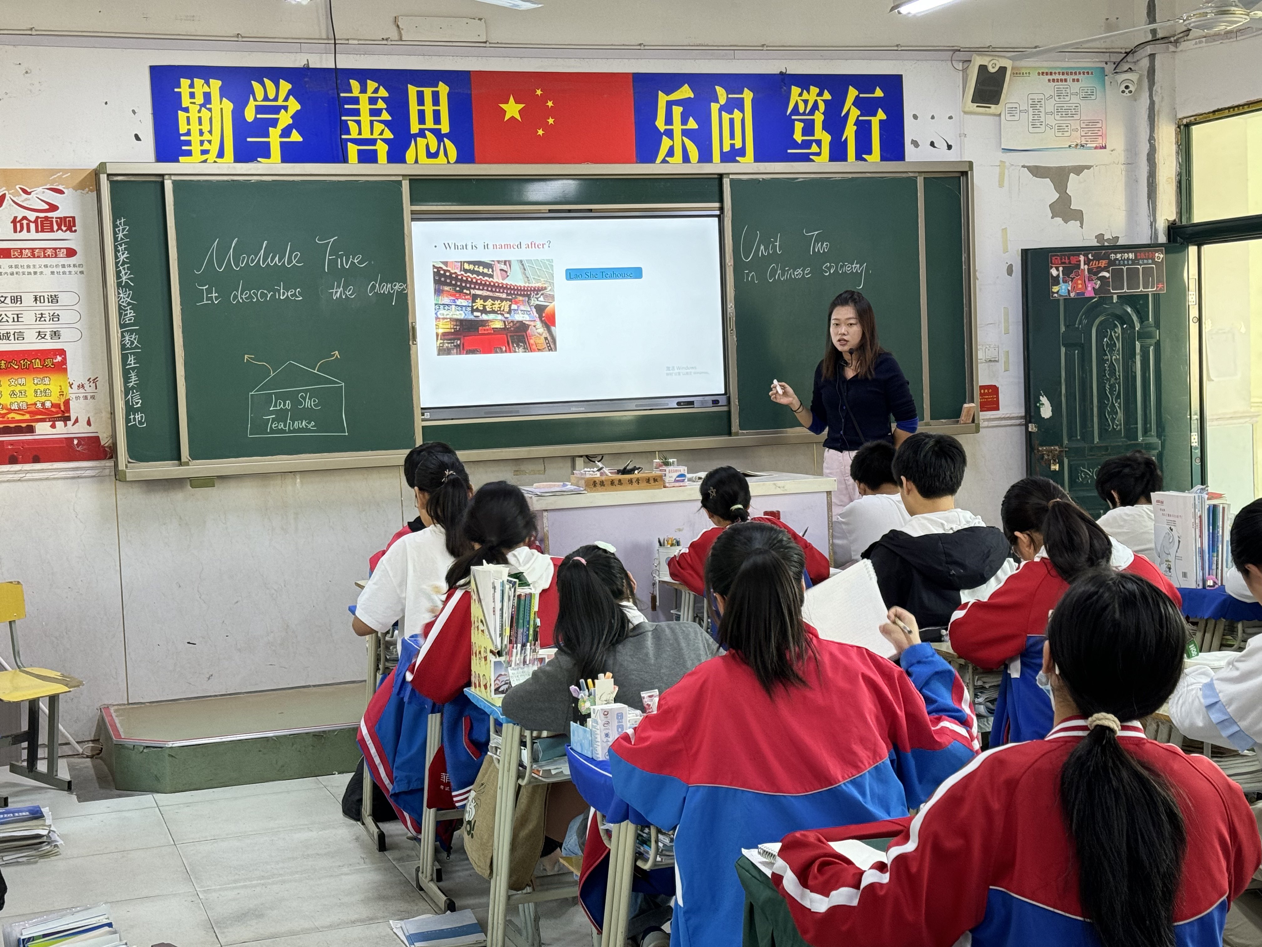 10月18日上午第二节课,殷琳莉老师在八(6)班开展了一堂精彩的公开课,本节课殷老师选取的是八年级上册模块五第二单元阅读课,本节课重点突出,让学生通过阅读文本了解中华传统文化的传承与变迁,掌握介绍人物与作品的写作结构,本节课除了课本上的基础内容,殷老师还进行了传统文化的拓展与升华,这对孩子知识背景的拓展有很大的帮助。整堂课教学思路清晰,学生有序的完成各项任务,课堂效果好。