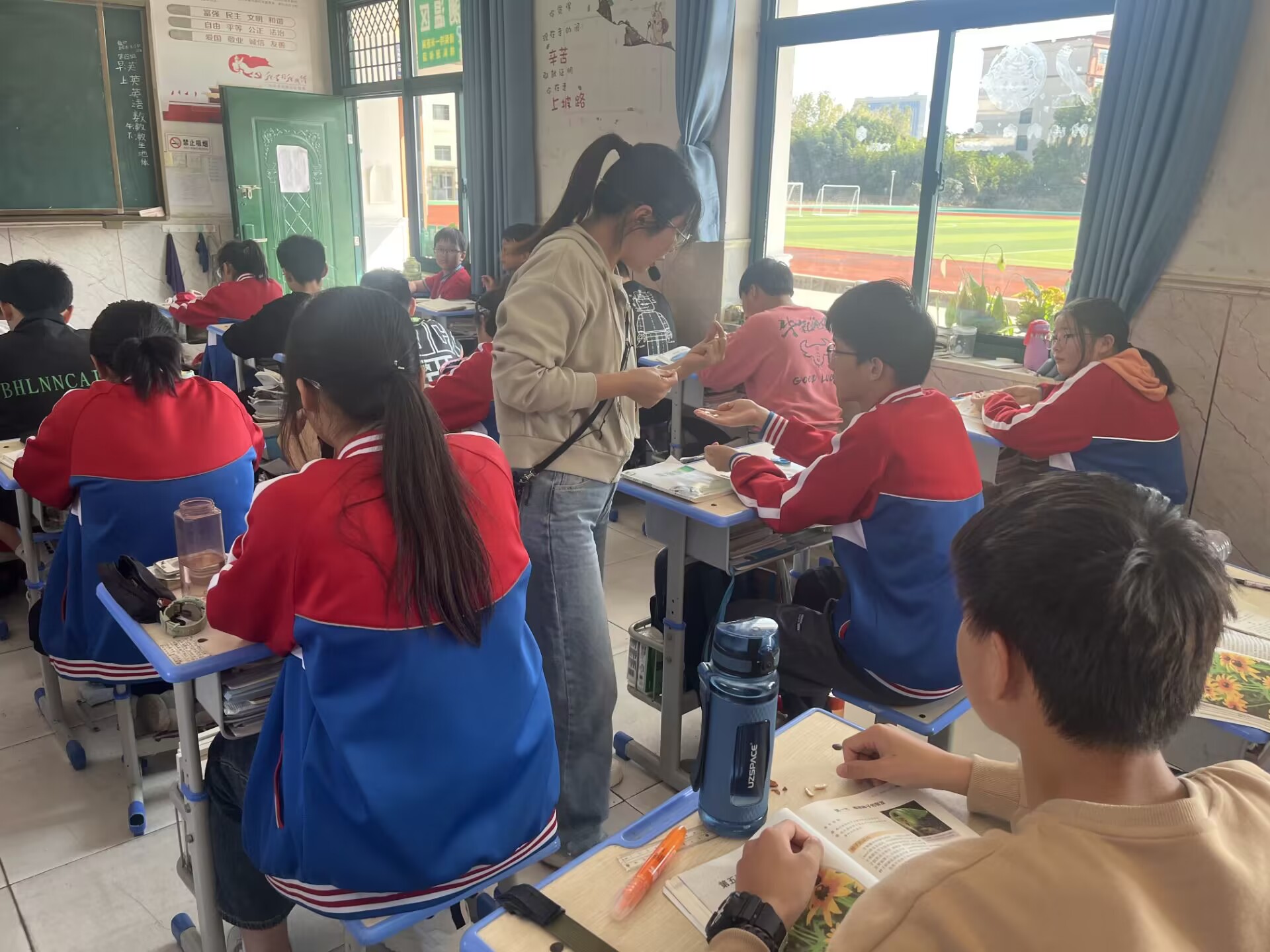10月19日下午第三节课,代莹莹老师在七(2)班进行语文公开课,课题室《荷叶·母亲》。这节课代老师教学思路清晰,课堂环节设计合理,重难点突出,学生互动积极踊跃。