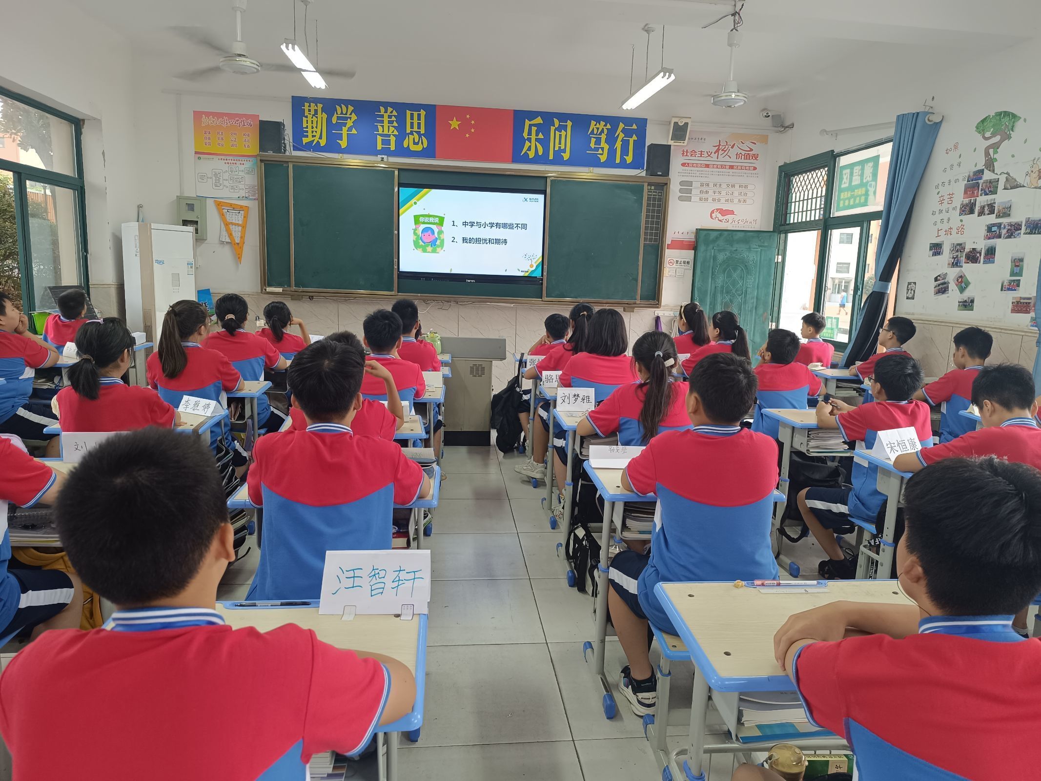 班会课围绕“安全记心间”“教学楼安全”“消防安全”“食品安全”“疾病预防”以及“杜绝校园暴力”六个模块展开。各班级形式不一,但主题明确,有的班级是以班主任为核心的班会,班主任通过PPT展示,向学生展示安全教育的重要性;还有的班级以视频为主题,生动直观地展示生活中发生的猝不及防的事故给人带来的生命伤害;还有一些班级开展以学生为主的班会课,学生分享自己在生活中所听闻的安全事故发表感悟。总之,内容丰富多彩!
