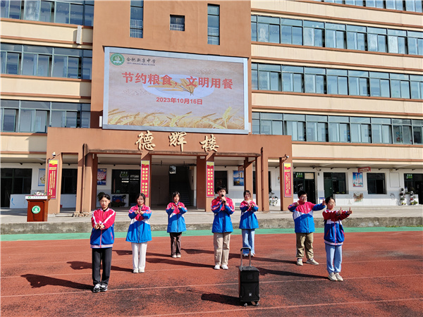 “锄禾日当午,汗滴禾下土。谁知盘中餐,粒粒皆辛苦。”这首诗道出了粮食粒粒珍贵,来之不易。今年的10月16日是第41个世界粮食日,合肥新康中学初中部于此日上午举行了“世界粮食日”宣传教育主题升旗仪式。活动由八(6)班的梁宏同学主持。