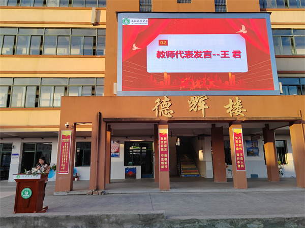 王君老师代表全体教师发言,对学生们接下来的学习生活提出几点建议:充分利用时间;抓住各学科特点来提高课堂效率;注重积累、反思和总结;端正良好的学习态度。