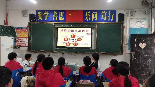 在此次班会课上,班主任们通过图片、视频以及真实的案例,用浅显易懂的语言向同学们讲述了校园欺凌的定义、表现、危害及影响。各班通过小组讨论、讲故事等多种形式的活动明确了建立良好同伴关系,做好情绪管理,正确交友,妥善处理同学矛盾的重要性,学会了应对欺凌、保护自己的知识。各班主任教育学生要增强法治观念,不做欺凌者;保持阳光乐观的心态,与同学们友好相处、互帮互助;提高自我保护意识,遇到欺凌敢于说“不”,智慧应对,敢于、善于拿起法律武器维护自身权益。