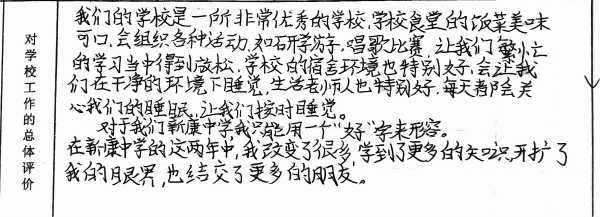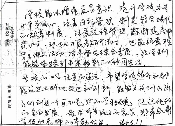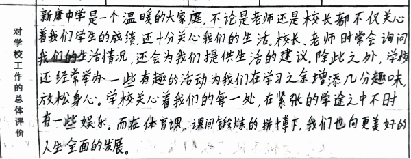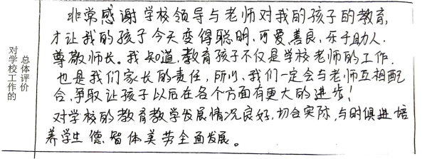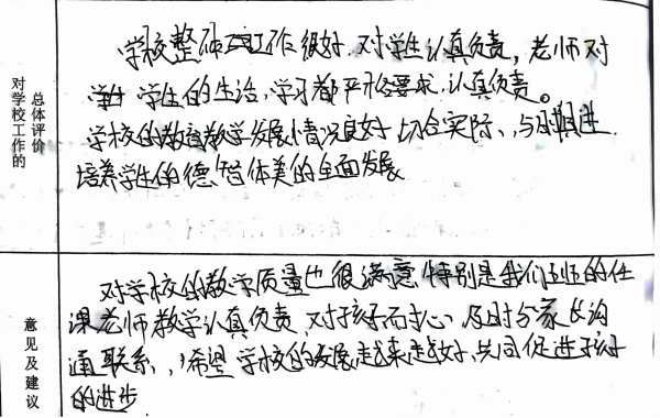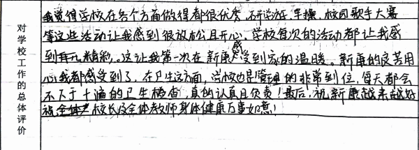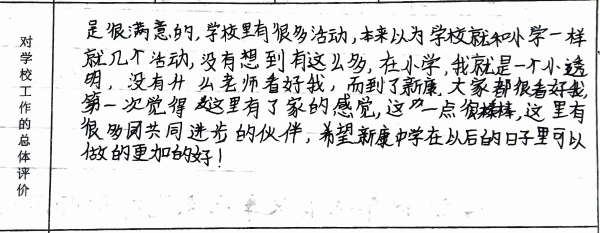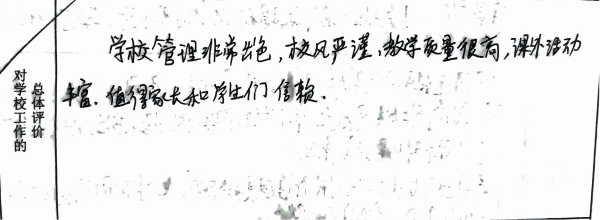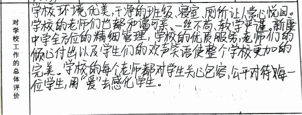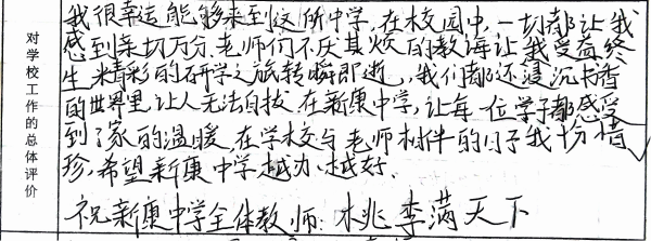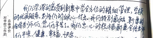 我们从意见征询表中选取一些文字鞭策全体新康人继续砥砺前行,以不辜负学生、家长的信任、支持。