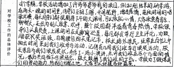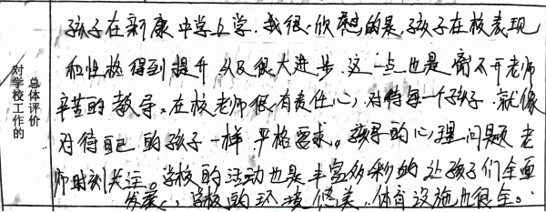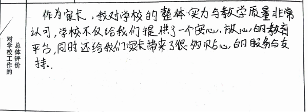 家长对学校的评价