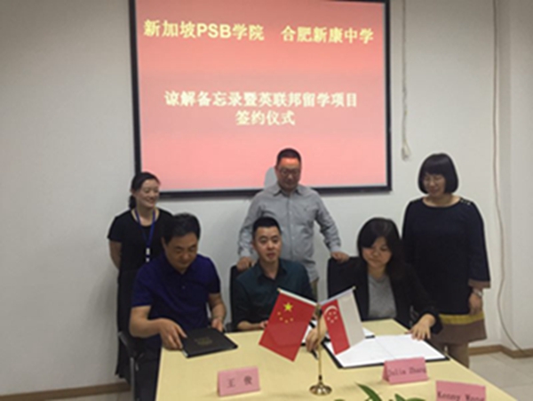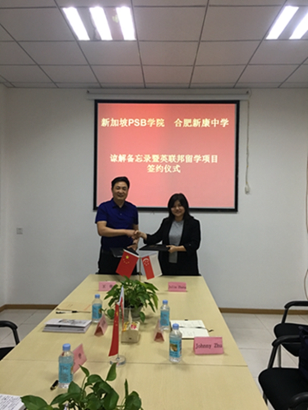 合肥新康中学是一所年轻的学校,虽然办学时间不长,但是学校校长一直致力于多元化、精品化、特色化的办学模式。作为年轻的民办学校,董事长兼校长王俊自办学以来一直积极创新、努力探索,带领着学校全体教职工迈开了国际化战略部署的第一步。通过本次活动,希望新加坡PSB学院和新康中学的合作项目能够顺利进行下去,为新康中学的学子们提供更多更好的学习和交流机会,为中国和新加坡的国际交流做出更多的贡献。