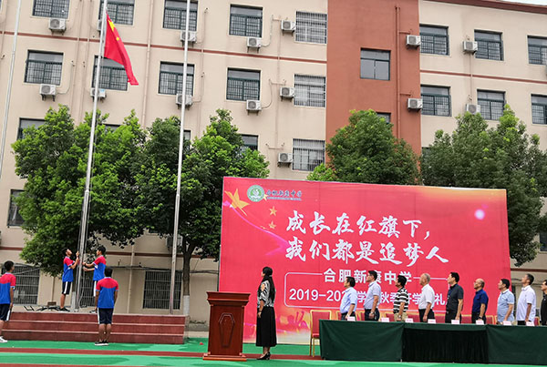“起来,不愿做奴隶的人……”在庄严肃穆的国歌声中,合肥新康中学迎来了主题为“成长在红旗下,我们都是追梦人”的新学年开学典礼。为庆祝新中国成立70周年,在这举国欢庆的时刻,新康中学全体师生们用成绩、用朗诵,迎接新学年开学的第一天,表达对伟大祖国的祝福,与祖国共同成长的喜悦与自豪。