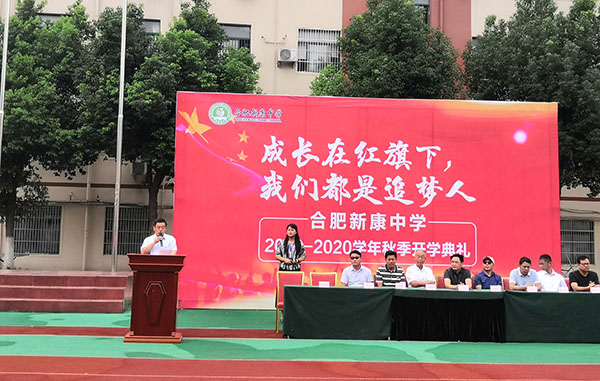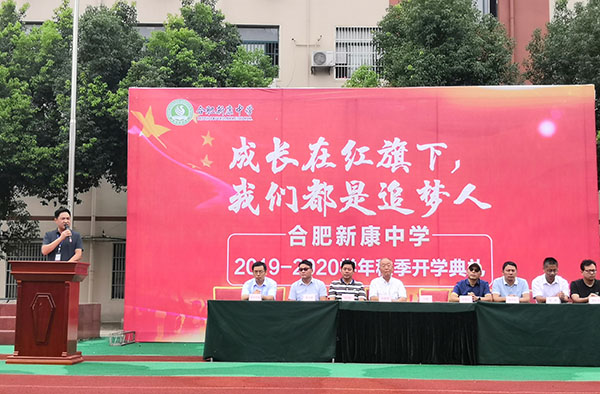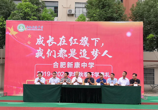9月2日上午,伴着动听的音乐,合肥新康中学以“成长在红旗下,我们都是追梦人”为主题的开学典礼在校田径场隆重举行,校团委魏鑫书记担任本次典礼的主持。合肥新康中学董事长王俊、合肥新康中学督导专员兼第一书记刘建国,合肥新康中学执行校长崔自勤,党支部专职副书记陈晓永,高中部校长胡文波、初中部校长徐学法、初中部副校长李森、龚红卫,高三年级家长代表邬宗胜出席了此次开学典礼。