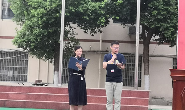 高中部孙涛老师、杨静静老师进行《我们爱我们的校园》的朗诵。