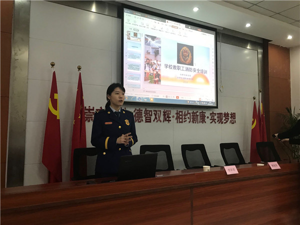 薛参谋首先用PPT课件播放了典型的火灾案例,剖析了造成火灾的原因;其次,向全体教职工讲授了消防基础知识、常用消防设施设备的使用方法;最后,详细介绍了火场扑救及火场逃生的应急处理办法。全体教职工对薛参谋消防安全专业知识深入浅出的讲解多次给予了热烈的掌声。