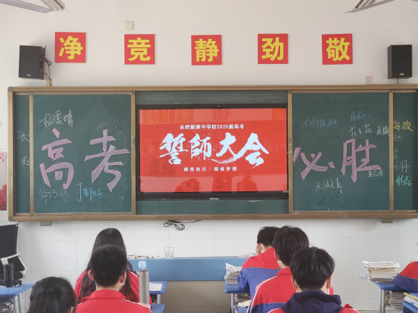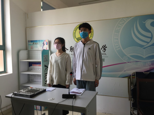本次会议通过广播向全体高三师生传达,由高三七班钱曦月、董祎鸣两位同学主持。下午14:50主持人宣布合肥新康中学2020高三学子高考誓师大会正式开始。