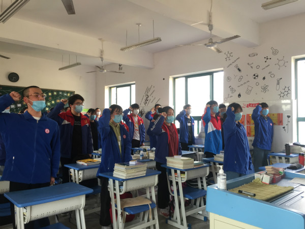 十载寒窗,百天苦练,何人健步登金榜?一腔热血,万丈豪情,我辈英才夺桂冠!接下来,各班分别进行宣誓,宣誓完毕后,全体高三学子共同宣誓。