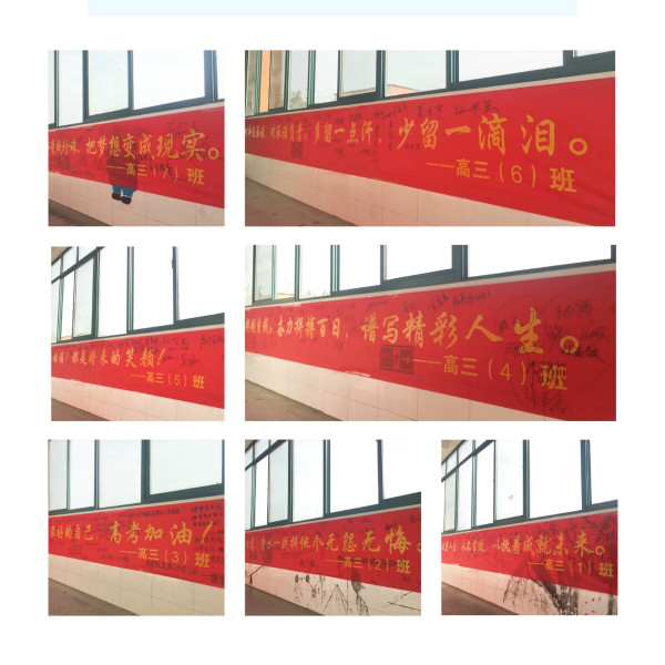 最后,各班班主任组织学生有序在走廊横幅上签名题字,气氛达到高潮。签名过后,伴随着激扬的音乐声,高考誓师大会圆满结束。