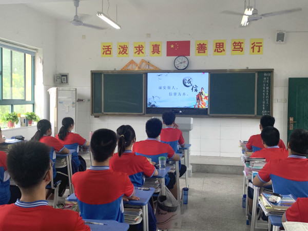 接着是观看两段视频:“诚信考试”和“我还没‘诚人’”。第一段视频用生动有趣的卡通青蛙形象为我们展示出考试作弊的害处和严重后果,并且提出了四点要求:一、认真复习,积极准备;二、科学复习,循序渐进;三、调整心态,积极应考;四、严守考纪,诚信考试。视频还介绍了法律法规中考场违规行为的必罚方式,让学生引以为戒。第二段视频则是由真人演绎一个小短片,主要展示了一个女生借钱不还、说话不诚信、爽约等,最后所有朋友讨厌她,离她而去的故事。由此可见,无论在哪,诚信尤其重要,是人之根本。