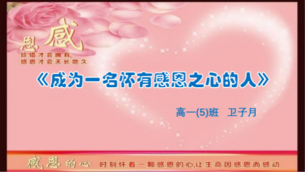 随后,高一(5)班卫子月同学发言“如何做一个心怀感恩的人”,卫同学通过亲身经历,表达了自己每年接受国家资助时,都心存感恩,想要立志报国,并呼吁同学们一定要做个“诚实守信、励志成才、感恩报国的人”。
