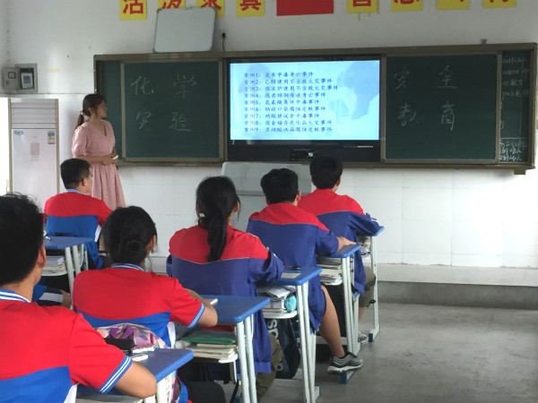 进行化学实验时往往接触到易碎、容易割伤的玻璃仪器;容易使人中毒的药品和气体;容易灼伤、烫伤的化学药品;易燃、易爆的可燃性气体;容易腐蚀皮肤、衣服、眼睛的强酸、强碱溶液等。为了增强学生们的化学实验安全意识,2020年6月2日的下午,化学组陈文老师带领学生开展了化学实验安全教育活动。