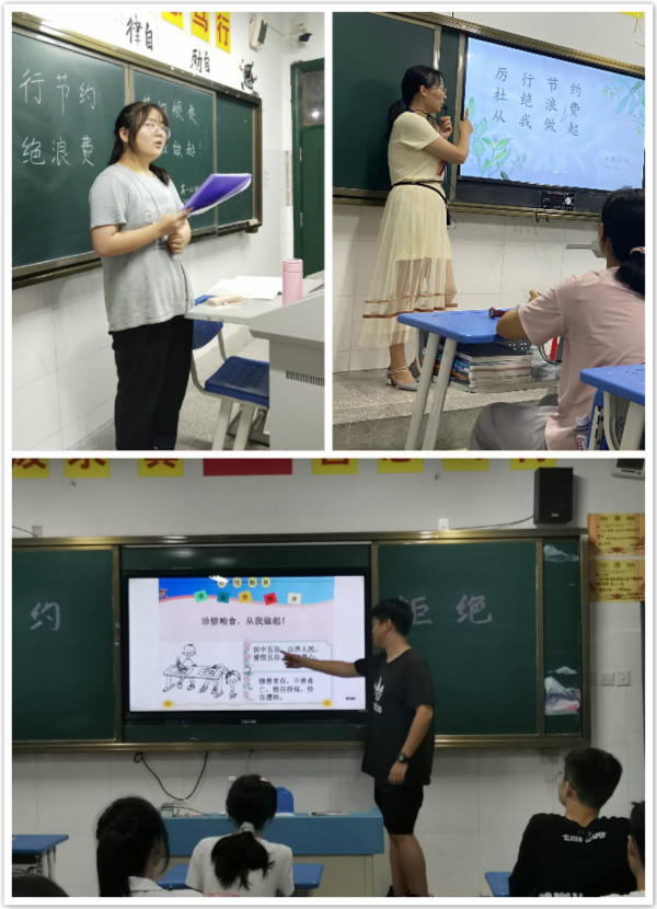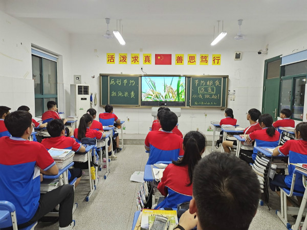班会课上,各班级形式不一,但主题明确,有的班级是以班主任为核心的班会,班主任通过PPT展示,向学生展示节约的重要性;还有的班级以视频为主题,展示粮食的来之不易;还有一些班级开展以学生为主的班会课,学生分享自己的生活经历,总之,内容精彩纷呈!