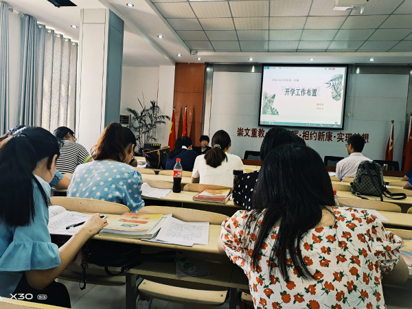 2020年8月19日,我校持续进行校本培训活动。上午由教务处余丽主任组织本次会议,主要内容是:首先,对高二,高三开学报到的工作日程和内容安排进行了相关说明。其次,对高二、高三开学工作布置提出了具体工作标准,如:清扫教室卫生,布置教室环境;设计书写欢迎标语;领取分发教材、课本;各年级学生报到教案撰写要求;报到当天安排;组建或改选班级干部,成立班委会;编排学生座位;发型、服饰常规检查;制定班级规章制度;设计新学期第一次黑板报;开学典礼的举办;9月1日的班会课安排等等。总之,为确保开学工作井然有序,我校教师将提前到岗,从“细”字着手,精心安排,周密部署,提前做好开学前准备工作的具体安排。
