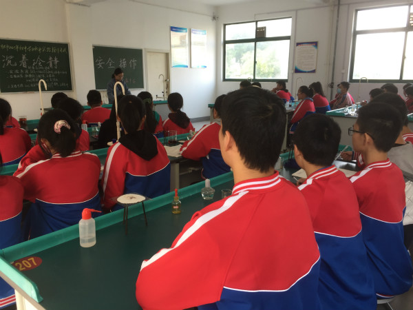 化学实验时往往接触到易碎、容易割伤的玻璃仪器;容易使人中毒的药品和气体;容易灼伤、烫伤的化学药品;易燃、易爆的可燃性气体;容易腐蚀皮肤、衣服、眼睛的强酸、强碱溶液……为进一步普及实验室安全知识,提高我校师生对实验室化学危险品突发安全事故的应急处置能力以及增强安全防范意识和安全防护技能,10月19日上午,我校徐雅婷老师带领学生在化学实验室开展了“化学实验安全教育和突发事件应急演练”活动。